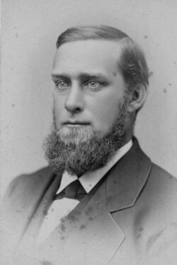 George Arnold is the son of Captain Leonard Arnold. He came to Muscatine in 1858. His birth took place in Quincy, Illinois, April 19, 1846. On September 28, 1883 he married Miss Helen Lysen in Muscatine. He died February 22, 1905.
