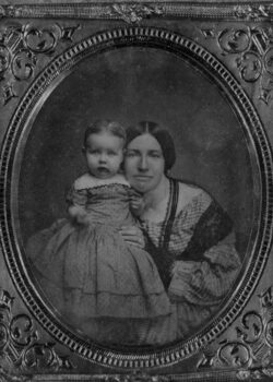 Martin Bartlett came to Muscatine in 1849. He was born in Virginia in 1832. On January 27, 1875 he was married. His death occurred May 8, 1897. He is shown holding his son Howard in this photograph.